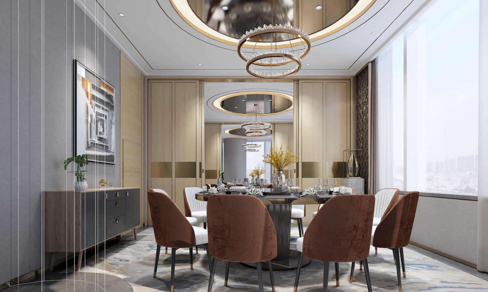 独立的包房空间,整体风格匹配了外厅区域的金色,使之看起来和谐统一。相对私密的就餐空间选用的活动板隔断,使其可以独立,亦可以将多个包房连成一个整体,满足多人同一空间中随心所欲地享受欢聚的时光。